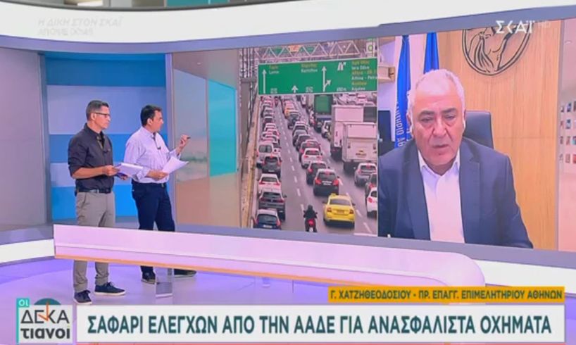 Ο Γιάννης Χατζηθεοδοσίου, σε συνέντευξη του στην εκπομπή του τηλεοπτικού σταθμού ΣΚΑΪ “Δεκατιανοί”, τη Δευτέρα 26 Αυγούστου 2024,αναφέρθηκε στα ανασφάλιστα αυτοκίνητα και στις επικείμενες ηλεκτρονικές διασταυρώσεις, αναφέροντας τα παρακάτω: