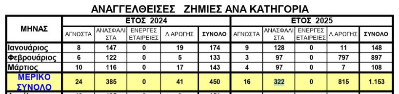 Σύμφωνα με τα στοιχεία του πρώτου τριμήνου του 2025 δηλώθηκαν 322 ζημίες με ανασφάλιστα οχήματα έναντι 385 το ίδιο διάστημα το 2024.