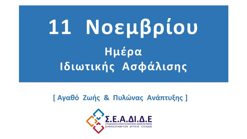 Γιορτάζουμε σήμερά , όπως κάθε χρόνο στις 11 Νοεμβρίου , την Ημέρα της Ιδιωτικής Ασφάλισης και ευχόμαστε σε κάθε Έλληνα , να εκτιμήσει και να στηρίξει τον κοινωνικό της ρόλο , για να εξακολουθήσει να παρέχει τα οφέλη της σε κάθε άνθρωπο που βρίσκεται σε ανάγκη .