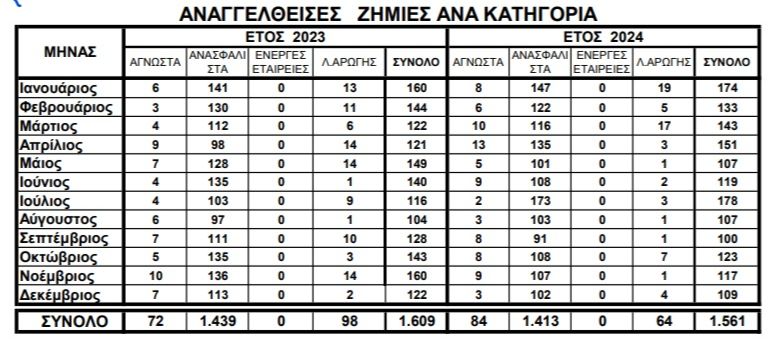Συγκεκριμένα το 2024 δηλώθηκαν 1.413 ζημιές έναντι 1.439 το 2023