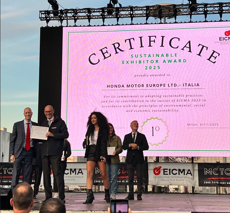 Στην 82η έκθεση EICMA, η Honda βραβεύτηκε με το EICMA 2025 Sustainable Exhibitor Award, για τη βιώσιμη διαχείριση του εκθεσιακού της περιπτέρου [1].